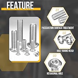 - Product Details: Color: Silver Material: 304 Stainless Steel Finish: Whitewashed Thread Type: Coarse Thread Thread Dia.: M4 Thread Pitch: 0.7mm/0.03" Thread Length: 100mm/3.94" Head Dia.: 7.6mm/0.3" Head Thickness: 2.2mm/0.09" Hexagon Width: 2.5mm/0.1" Package Content: 12pcs x Button Head Hex Socket Screws Material - Constructed with stainless steel material with whitewashed treatment, the hex socket cap screw is of stronger durability, has a bright appearance, is not easier to deform or corrode, and has a long service life than other surface finishes. Feature - The button socket head cap screw is designed with an inner hex drive style and pan head, providing a higher torque and clamping force, as well as offering a wider bearing surface and high tensile strength. Application - Good replacement parts and construction fasteners for cars, bicycles, communication equipment, and ship assembly. Installation - To access this hex drive screw, you will need to use a hex wrench to tighten or loosen it. The socket button head design enhances torque capabilities, allowing for greater clamping force. For optimal results, it is recommended to use a retaining washer to lock the hex drive in place securely.