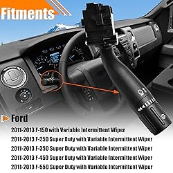• Turn Signal Wiper Dimmer Combination Multi-Function SwitchFit For:2011-2013 Ford F-150 with Variable Intermittent Wiper2011-2013 Ford F-250 Super Duty with Variable Intermittent Wiper2011-2013 Ford F-350 Super Duty with Variable Intermittent Wiper2011-2013 Ford F-450 Super Duty with Variable Intermittent Wiper2011-2013 Ford F-550 Super Duty with Variable Intermittent Wiper