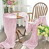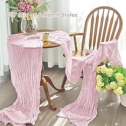 Polyester Cheesecloth Table Runner - Made of excellent quality polyester.High temperature setting Wrinkled design and delicate edges with seamless technology make sheer table runner more beautiful than traditional fabrics Elegant Table Runner - Romantic Vintage Gauze Table Runner has a rustic and elegant look,soft touch and cheesecloth fabric makes the table runner light enough to sway in the wind. It is fade-resistant, washable, does not shrink and is reusable Multi Scene Decoration - Cheese Cloth Boho Table Runner is excellent choice for beautifying tables.Such as wedding,baby shower,bridal showers,birthday parties,engagement banquet,dessert tables,weddings arch,Valentine's Day,Thanksgiving,Christmas Package - 10 ft (1/2/6pcs) farmhouse cheesecloth tablecloths,enough quantity for wedding reception and all kinds of gatherings,each rustic table runner measures about 35 x 120 inches.Even be used for chair cover sashes,decorative napkins,backdrop curtains Care Instructions - Wedding table runners are recommended for hand wash in cold water,or machine wash in the gentle cycle with a laundry bag;In order to maintain wrinkled texture,please do not iron or use hot water,do not bleach or soak for too long time