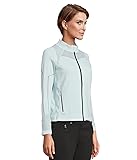 SPORTY CHIC WITH A CLASSIC TOUCH: The Jamie Sadock Full Zip Sweater Jacket blends timeless elegance with a sporty edge, making it a must-have for effortless layering. Designed with a sleek full-zip front, this jacket offers easy wear while locking out the chill. The collared neckline adds a polished touch, making it just as perfect for an active day outdoors as it is for casual outings. LIGHTWEIGHT WARMTH FOR ALL-DAY COMFORT: Crafted from a soft yet durable fabric blend, this jacket delivers the warmth you need without the bulk. The breathable polyamide blend provides insulation while remaining lightweight, ensuring year-round comfort. With just the right amount of stretch, it moves effortlessly with you, allowing for unrestricted motion. PRACTICAL DESIGN WITH A LUXE FEEL: Function meets sophistication with thoughtfully designed details that enhance everyday wear. The zippered front pockets offer a secure space for small essentials, so you can keep your hands free while on the go. The long sleeves and straight hem create a sleek silhouette, flattering your figure while maintaining an easygoing fit. VERSATILE STYLE THAT ELEVATES ANY LOOK: Whether you're dressing up or keeping it casual, this full-zip sweater jacket adapts to your personal style. Layer it over athleisure pieces for a relaxed vibe, or pair it with jeans and boots for a polished weekend look. The subtle yet refined design makes it easy to transition from the golf course to dinner plans, proving that comfort and sophistication can go hand in hand. A STATEMENT PIECE IN A TIMELESS SHADE: The soft, dreamy "Baby" hue adds a fresh touch to your wardrobe, offering a subtle pop of color that remains effortlessly wearable. This delicate shade complements a wide range of outfits, from neutral tones to bold prints. Whether you prefer an understated aesthetic or love mixing and matching textures, this colorway enhances your style with a modern yet timeless appeal.