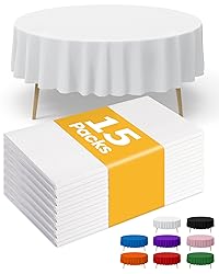Niuara White Plastic Table Cloth Round Table 15 Pack, 84'' Tablecloth for Round Tables, Table Cloth for Disposable Use, Table Cover for Holiday Party, Gathering