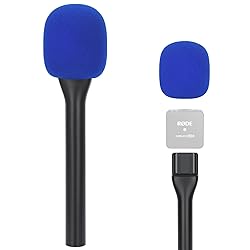 SUNMON Handheld Mic Stand for Rode Wireless Mic with Pop Filter(Blue), Holder for Rode Go 2/Wireless Pro, Interview Microphone Adapter Handheld for Wireless Go/Wireless ME