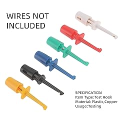 Type: 30pcs Mini Electrical Testing Hooks;Length: 40mm/1.57 Inches;Colors:Black,White,Orange,Red,Blue,Green High Quality: Test Hooks Clips Made of High Quality Material, Insulation Plastic Boots Covered, More Safe to Use. Light Weight, High Performance. Great Replacement Connector Hooks in Electronics or Laboratory Testing Work Mini Electrical Testing Hooks: Spring Loaded Mini Hook Can Grasp Tiny Components Firmly and Avoid Short-Circuit. Also Can Be Inserted Into Breadboard or Other Connector Easy to Install: Test Hooks Clips Convenient to Install, Removed the Rear Cap, Can be Connected to Multimeter or DC Power with Testing Lead Cable Easily Wide Application: Test Hooks Clips Widely Used for Testing Electronics with Multimeter and Other Instruments, Helps to Test the IC (integrated circuit) or Repair Cell Phones and Other Small Electronic Products