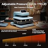 - HTVRONT automatic 15x15 heat press machine for t shirtsPackage contains:heat press 15x15 x 1Detailed instruction manual x 1Heat Press Mat x 1Teflon Sheet x 1Specifications:15x15 inchesAdvantages:①50-170LB Pressure Adjustable ②4.5 CM/1.77 IN Higher Heating Height③Automatic Heat Press & Auto Release④Angle-Adjustable Screen & Pre-set Parameters⑤Fully Pull-out Drawer Board & Auto Shut-OffApplication:√ Ideal for heat transfer vinyl,DTF, sublimation paper,heat transfer paper, etc.√ Making and design your clothes√ Perfect gift for friends, family Quality service: HTVRONT is committed to providing customers with high-quality customer service. The warranty period of this t-shirt press machine is 1 year from the date of purchase. If you have any questions with HTVRONT auto 15x15 heat press, please feel free to contact us ASAP. We will try our best to solve your problems and provide you with a joyful experience.Up To 170 LB Pressure Adjustable: HTVRONT 15x15 heat press machine for t shirts allows for greater pressure customization, ensuring that you can achieve the perfect heat press for every material and design like DTF, sublimation or heat transfer paper. Whether you need light pressure for delicate fabrics or heavy pressure for thicker items like hoodies, multi-layer transfers,etc, you'll have the flexibility to adjust accordingly and achieve professional-grade results