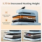 【What You Get】The heat press machines bundle include htvront automatic heat press 2 x 1, which comes with the stylish bubble blue color & 1 heat press mat & 1 teflon sheet. Meanwhile this include heat press mini x 1, which is mint, lightweight and easy to carry. This would be good for a crafting day or making items with different needs 【Up To 170 LB Pressure Adjustable】HTVRONT Automatic Heat Press 2 allows for greater pressure customization, ensuring that you can achieve the perfect heat press for every material and design like puff htv, DTF, sublimation or heat transfer paper. Whether you need light pressure for delicate fabrics or heavy pressure for thicker items like hoodies, multi-layer transfers,etc, you'll have the flexibility to adjust accordingly and achieve professional-grade results 【1.77 IN Heating Height & Heat Up Fast】Elevate your projects with our heat press machine for t shirts that offers an increased heating height compared to other's 1 IN .The generous heat press 15x15 size allows for larger & wider design for hoodies, and home decor. Even that, this can also achieve fast & even heat with dual tube. The machine could reach 410℉ in 5min30s and adjust time within 1-999s. Saving your 30% waiting time & perfect for those who need to complete projects on a tight schedule 【Automatic Heat Press & Auto Release】Say goodbye to manual effort and hello to effortless operation. Simply arrange your materials, activate the press, and let the 15x15 heat press do the heavy lifting for you. HTVRONT heat press is ideal for small businesses, craft enthusiasts, or anyone seeking to streamline their workflow. Eliminate the strain and spend less time on the heat press process, freeing up more time to craft breathtaking designs and expand your business 【Small but mighty】With the cute size, the mini heat press machine is very suitable for you to handle some small projects which you don't want to operate the big heat press. Compared with other iron press, our mini heat press is easy to use for small or unique HTV projects and sublimation ink projects