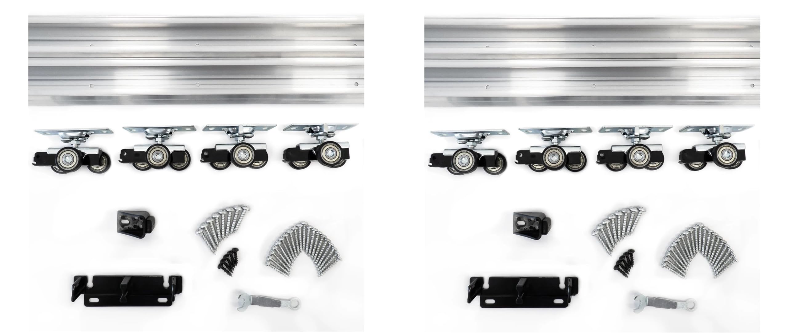 Full Sliding Door Hardware Set: Includes 1x top sliding track, 2x soft-close mechanisms, 2x bottom wheels, 1x bottom sliding track, 1x anti-jump rolling hanger, 1x floor guide, matching screws, and 1x hex key. Soft-Close System: The special system slows down the door’s closing speed, offering the smooth and quiet operation of the door and the mechanism. Longer-Lasting Mechanism: Villar Home Designs’ Magic Door Hardware Kit offers astounding longevity of up to 100,000 work cycles. Universal Fitment: Use door slabs of different thicknesses as the magic sliding door hardware kit is perfect for 1 ¼” to 1 ¾” thick doors. For Wooden or Metal Doors: Mount wooden and metal doors alike with the hardware kit - just keep in mind that wooden door slabs need to be cut to size. Limited Warranty: Villar Home Designs stands behind its product and offers a 2-year limited warranty with each sliding door hardware kit. Stainless Steel Door Hardware: To further improve the mechanism’s lifespan, stainless steel was used to make it rust-resistant. Heavy-Duty Durability: The strengthened mechanism is capable of handling up to 140 lbs, making it suitable for various door slabs.