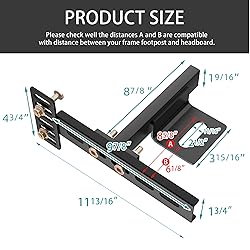 Function: The adjustable headboard brackets are designed to attach your exist headboard,extension brackets are compatible with bolt-on footboard of bed frames. Size Details for Installation: Adjustable headboard brackets fit for bed frame of Twin,Full,Queen,or King with leg's screw max.diameter 3/4 inch.This brackets for headboard have two optional bolts diameter 5/16 inch to meet the depth of pre-drilled headboard holes no more than 2-9/16 inches.With multiple slots,this headboard brackets can be easily customized width and distance for installation. Durable Material: Headboard brackets for adjustable bed base are welded by solid steels for excellent durability and security.Footboard brackets are made with 9 Gauge steel,this headboard brackets are made with 14 Gauge steel.Electrophoresis black plated to prevent rust and corrosion,ensure a long lasting and prevent damage to your bed. Package Including: Headboard brackets for adjustable bed base are set of 2 footboard extensions and include the hardwares( 8 nuts,8 bolts,1 spanner,etc). Tips and Service: Before order,please double check well the dimensions of this headboard brackets are compatible with distance between your frame footpost and headboard for installtion.If any concerns please feel free to contact us.