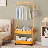 Ergocar Metal Clothing Rack With Multi -Layer Storage Baskets And Mobile Independent Hangers With Pulley Hanger Small Space Modern Clothing Rack, Used To Hang Jackets, Skirts, Pants, Handbags