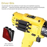Quick Bit Replacement: Experience seamless switching between drill bits anytime, anywhere, this tool holster eliminates the hassle of rummaging through cluttered toolboxes filled with mixed drill bits. Enhanced Adhesion: With superior adhesion, these electric drill bit holders undergo high strength testing, ensuring a tight hold even when exposed to water or oil, preventing accidental slips or dislodging. Side Storage: Each bit holder accommodates multiple 1/4 inch drill bits, neatly stored alongside your power drill for accessibility at any time, streamlining your workflow and saving valuable work space. Rubber Material: Crafted from excellent rubber material, these drill bit holders offer durability and a comfortable grip, ensuring long lasting performance and reducing hand fatigue during extended use. Versatile and Compact: This bit holster maximizes efficiency by combining functionality with portability, allowing you to carry and access your bits effortlessly without clutter, fits and enthusiasts.