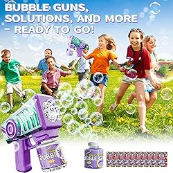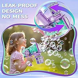 Transparent Body with RGB Lights: Our Transparent Bubble Gun 1pack features a see-through design with RGB lighting, adding a cool and vibrant twist to bubble-blowing Complete Set for Hours of Fun: The set includes 1 bubble guns, 1 bottles of bubble solution, and 10 packets of concentrated solution, ensuring endless bubble-blowing entertainment Massive Bubble Output: With a bubble output of over 5,000 bubbles per minute, our bubble guns create a magical and festive atmosphere Safe and Leak-Proof Design: Made with safety and durability. Our bubble guns feature a leak-proof design to prevent messy spills Perfect Gift for Kids' Celebrations: Ideal for birthdays, parties, outdoors, and weddings, our Transparent Bubble Gun 2pack is the perfect gift for kids aged 3-12