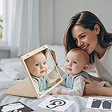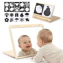 ✨ Dual-Sided Montessori Design Ends Tummy Time Struggles: Short tummy time sessions? Our double-sided baby mirror features a large shatter-proof mirror for self-discovery and a card holder for high-contrast cards. Engages babies longer while building neck and core strength. 🏠 Adjustable Viewing Angle – No Need to Move Your Baby: Simply adjust the mirror, not your baby. Our tiltable newborn mirror provides the perfect viewing angle for comfortable and continuous interaction during tummy time, keeping your little one focused and engaged. 👀 Extra-Large Safe Mirror for Visual Development: Upgrade from small, distorted mirrors. Our extra-large tummy time baby mirror offers twice the viewing area with a non-glass reflective surface and smooth wooden frame. Supports visual tracking and self-recognition safely. 🧠 20 High-Contrast Cards for Evolving Sensory Play: Includes 20 double-sided high-contrast cards for lasting visual stimulation. Designed to hold two cards at once, it provides a variety of learning opportunities and maintains your baby's interest as they grow. 📚 Versatile & Long-Lasting – Grows with Your Child: More than a tummy time mirror, it transforms into a toddler book stand, tablet holder, or personal mirror. A practical Montessori-inspired gift that delivers lasting developmental value.