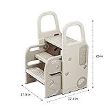Versatile 2-in-1 Design: This foldable toddler step stool transforms easily from a sturdy stool to a dual-step platform or triple-step climbing mode, making it suitable for different tasks and ages. Perfect for helping children reach sinks, counters, or shelves, and encouraging them to participate in daily activities such as handwashing, brushing teeth, or assisting in the kitchen. Space-Saving Storage: The innovative push-and-store feature allows the stool to be compactly stored at just 10.9 inches, making it an ideal addition to small spaces like bathrooms, kitchens, or closets. This feature helps maintain a tidy and organized home while ensuring the stool is always within easy reach. Safety and Stability: Designed with safety as a priority, the step stool features anti-slip steps and non-slip rubber caps that provide secure footing. The sturdy construction offers stability during use, making it a reliable choice for activities like potty training, reaching high places, or using as a step for the toilet or sink. Promotes Independence: Lightweight and easy to carry, this step stool encourages children to take charge of daily tasks with confidence. By allowing them to reach higher surfaces, it fosters self-reliance, supports developmental milestones, and helps them gain a sense of accomplishment through activities like handwashing and using the toilet. Durable and Easy to Maintain: Made from high-quality, durable materials that ensure long-lasting use. This step stool requires quick, tool-free assembly, so parents can set it up effortlessly. Smooth, easy-to-clean surfaces allow for convenient hygiene maintenance, making it ideal for everyday use in busy households.