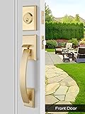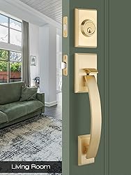 Front Door Lock Set: This door handle set consists of a front door handle set and a single deadbolt; The exterior deadbolt requires a key to open, while the thumb button allows locking from the inside, ensuring security at all times; This dual-locking mechanism is especially ideal for families with children or the elderly, offering an added protection against unauthorized access; It is suitable for both residential and commercial places; Front doors, patios, or offices are all good choices! Premium Quality: Crafted with a high-quality zinc alloy, this front door lock set is not only sturdy and durable, but also waterproof and rust-free; Its thick coating making it won't be scratched easily; Even if you have pets at home, you can still use it without any worries; Besides, our mechanical mechanism operates smoothly, eliminating the worry of getting stuck; Once installed correctly, it operates almost silently, allowing you to enjoy your quiet moments without disturbance Meticulous Design: This door handle set adopts a satin brass finish, which shows a sleek and elegant aura, making it ideal for modern-style doors; The lever-style handle requires just a gentle press to open the door, catering to those with limited grip strength or anyone who may find it inconvenient to operate traditional turning knobs, especially when their hands are dirty; Whether from aesthetics or practicality, our front door handle set is an excellent choice for upgrading your room doors! Reversible & Adjustable: If you can't figure out whether your door fits the left or right handle, don't worry, this door handle is reversible for both left and right doors; It fits door thickness from 1 3/8 inches (35 mm) to 1 3/4 inches (45 mm), and the door latch can be adjusted between 2 3/8 inches (60 mm) - 2 3/4 inches (70 mm) from the edge; Before your purchase, we recommend measuring your door dimensions to ensure an ideal match Ease to Install: No need to call in professional help, all you need is just a Phillips screwdriver for easy installation; A clear installation manual comes with the package, please be sure to read it carefully before proceeding with the installation; Besides, if you have any questions or require assistance with the product, please feel free to contact us; Our dedicated support team is ready to provide you with effective solutions