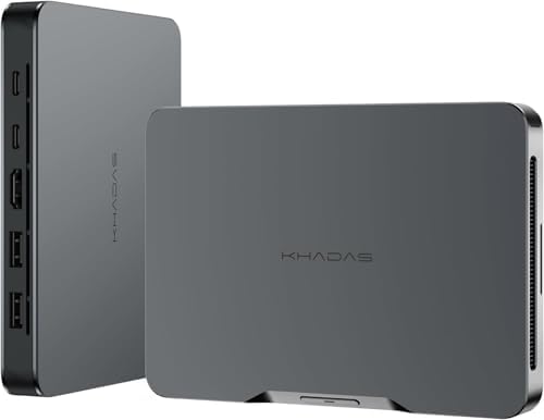 - RAM & Storage:Dual-channel 16GB LPDDR5 4600Mhz 512GB M.2 NVMe PCIe 4.0 2230 SSD, Upgrade Friendly Khadas Mind 1 mini computer has a built-in dual channel 16GB LPDDR5 5200MT/S RAM. An additional free 1 x M.2 2230 PCIe 3.0 SSD slot, effortless Expansion with additional M.2 NVMe 2230 SSD slots hidden beneath a clever magnetic cover plate expandable up to 2TB.