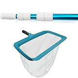 UNIVERSAL ACCESSORY ATTACHMENT SIZE - pool telescopic pole universal fit size allows you to easily attach most pool maintenance accessories like nets, skimmers, rakes, brushes and vacuum heads(Attachments not included). Pool extension pole is designed with an 1-1/4" diameter connection end, which is the universal size needed to fit standard size pool accessories. HEAVY DUTY POOL POLE - Durable and sturdy professional 15 foot blue anodized aluminum telescopic swimming pool pole. It’s made of high quality ribbed aluminum alloy for extra strength and longevity, which is not rusty and bending. Professional Pool Skimmer Net, Upgraded Extra Wide Scoop Edge, Swimming Leaf Rake with Ultra Fine Mesh Deep Nylon Net Bag - Pool Nets for Cleaning Leaves, Debris