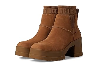 - If you love our Brooklyn boot, you'll adore our Moxy Chelsea. It delivers the features you love about the Brooklyn like the chunky lug sole, Twin Seam details, and The Graphic UGG® Font knit gore, and adds a chic, square toe. The upper is crafted with water-resistant suede and lined with soft microfiber for wear-all-day comfort. Set upon a lightweight rubber outsole that adds 2" of height at the platform, and 3" at the heel.