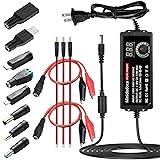 【Adjustable Voltage】Input: AC 100~240V, 50/60Hz, Output Voltage can be adjusted from 3V to 36V DC (such as 3V 4V 4.5V 5V 5.5V 6V 9V 12V 14V 15V 19V 20V 24V 28V 30V 36V). Wattage Max 2A, 72W; It can supply with amps less than 2A, such as 100mA,300mA, 500mA,800mA,1A, 1.5A, 2A. 【Upgraded Version Power Supply】Built-in protruding rotatable button for adjusting the voltage suitable for your device ,The LED displays real-time voltage,which helps you control real-time condition of charging. The knob can be adjusted more evenly, and it can reach 18V ~ 20V by rotating 50%. Increase the off gear to turn off the power without pulling the plug. 【Multiple DC Tips】Equipped with 13 frequently used plugs: 5.5X2.1mm female to Female USB, 5.5X2.1mm female to Male USB,Micro-USB, Type-C, DC terminal connector, 6.3x4.0mm+Pin,6.3x3.0mm, 4.0x1.7mm,2pcs 5.5X2.5mm female to alligator clip,3pcs 5.5X2.5mm male connector with cable. 【Widely Used】The 72W all-in-one multipurpose adapter fit for most AC/DC home appliances. Can be perfect for Wireless Router, ADSL Cats, HUB, Security Cameras, WiFi Camera, DVD Player, Audio/ Video device, 3D Printer, CCTV System, LCD Monitor, Bluetooth speaker, Sound bar, digital piano, portable Keyboard, IR illuminator, LED strip light and other household / portable devices. (Check dc jack before buy: 5.5x2.5mm, compatible 5.5x2.1mm) 【Safety Protection Design】Built-in protruding rotatable button for adjusting the voltage suitable for your device,the LED displays real-time voltage,which helps you control real-time condition of charging. The power supply built-in multiple safety protection systems:Automatic over voltage cut-off, over current cut-off,over temperature cut-off,short circuit cut-off.No noise, no spontaneous combustion,no explosion,no fire hazard,safe to use .All products tested and shipped.