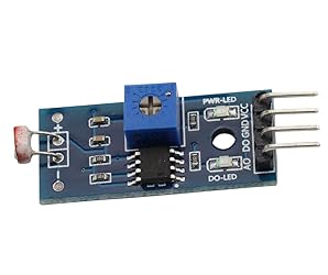 - Module features: 1. Use sensitive photoresistor sensor 2. Working voltage 3.3V-5V 3. Comparator output, clean signal, good waveform, strong driving ability, exceeding 15mA. 4. Equipped with adjustable potentiometer to adjust the brightness of the detected light. 5. Output form: DO digital switch output (0 and 1) and AO analog voltage output. 6. Equipped with fixing bolt holes for easy installation. 7. Use wide voltage LM393 comparator. 8. Small board PCB size: 32mm x 14mm. Module usage instructions: 1. The photoresistor module is most sensitive to ambient light and is generally used to detect the brightness of the ambient light and trigger the microcontroller or relay module; 2. When the ambient light brightness does not reach the set threshold, the DO end outputs a high level. When the ambient light brightness exceeds the set threshold, the DO end outputs a low level; 3. The DO output end can be directly connected to the microcontroller, and the high and low levels are detected by the microcontroller to detect the change in the ambient light brightness; 4. The DO output end can directly drive the relay module of our store, thereby forming a light-controlled switch. 5. The analog output AO of the small board can be connected to the AD module. Through AD conversion, a more accurate value of the ambient light intensity can be obtained. Application: Light brightness detection, light brightness sensor, smart car light-seeking module. Package contain: 10PCS Photosensitive Sensor Module Light Intensity Detection module