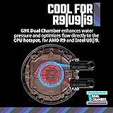 Cool for Ryzen 9 | Ultra 9: G9R Gen Dual-Chamber design boosts water flow to the CPU hotspot for peak cooling on AMD Ryzen 9 and Intel Ultra 9 CPUs. Infinity Mirror Design: The infinity mirror delivers a stunning ARGB lighting upgrade to any gaming PC, fully customizable through motherboard control. Quiet Cooling Fan: Dynamic PWM (650 to 1,750) Fan, optimized for quiet operation and cooling performance. Easy Installation: Compatible brackets for quick and easy installation on AM5|4 and LGA 1851|1700 platforms. CryoFuze Thermal Paste: The included CryoFuze paste provides excellent thermal conductivity, maintaining stable temperatures from -50°C to 250°C. Frosted Blade Design: Frosted fan blades amplify and diffuse vibrant ARGB lighting for a dynamic glow, fully customizable through motherboard control. Ideal Tubing Length: The 400mm tubing provides flexibility, a hassle-free installation in various chassis configurations. Tube Clips Included: Tube clips are provided to improve and reinforce your cooler setup.