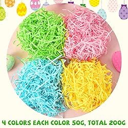- To add a unique charm and colorful to your Easter basket, we provide the Easter crinkle paper. Package contains 4 colors: green, blue, yellow and pink, 50g for each color, which is enough for you to create a Easter basket full of festival. Whether family gathering, gathering of friends or festival celebration, the Easter grass basket filler can meet your decoration needs and make your basket the highlight of the festival. These grass for Easter baskets are made of reliable paper materials, which are delicate to touch, flexible and have good durability. Whether used for decoration or filling, the Easter crinkle paper can maintain a stable shape and color, bringing you a wonderful using experience. Enhance your Easter party gifts with our colorful Easter grass for baskets, which is not only ideal for filling baskets, but also create a moment of joy and surprise, which can not only effectively avoid your gifts from damage, but also add a unique festival atmosphere to your gifts, making your gifts more outstanding and meaningful. In addition, this paper Easter grass has a wide range of applications. Easter grass can be used not only for Easter, but also ideal for decoration and handicraft craft in wedding celebrations, birthday parties, graduation ceremonies and other occasions, providing unlimited possibilities for your creativity and making your life more colorful and interesting.