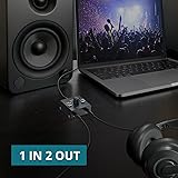 【 3.5mm Bidirectional Audio Switch】Audio Switcher 1X2 or 2X1 designed for customers with multiple audio sources and outputs 3.5mm interface audio selector 2(1)-in-1(2)-Out. support you choose between outputs 1 and 2 to receive a single input 【Sound Adjustment Function】Direct Volume Control with This Innovative Sound Switch, Take full command of your audio levels. This sound switch features a dedicated adjustment function, allowing you to easily control and fine-tune the volume to match any situation 【Mute & 1/2 Switch】 For simple operation, we have added a mute button, which allows you to switch to different usage scenarios with one click. When you need to pause all the music sound No need to worry directly press our mute button One key to solve your problem 【Low Impedance, High Quality】This audio switcher is designed with low impedance, which can ensure the normal audio output in the case of great to ensure that you receive the sound quality without any impact, we also equipped with a high-quality 3.5MM audio cable No need to buy extra, enjoy your music feast 【Metal Casing, anti-interference.】Adopts metal casing to prevent external interference, and the product is super small size Convenient for you to put next to the TV, computer, etc. No need to take up the position with the metal casing to avoid unwanted influences 【Wide Compatibility】Audio Sources: PC computers, laptops, mobile phones, audio players, game consoles, and more. Audio Play Devices: headphones, speakers, audio amplifiers, and more. Suitable for Most 3.5mm audio interfaces, ( not support microphone)