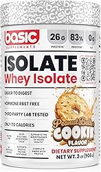 BASIC SUPPLEMENTS Basic Whey Protein Isolate, 26g Protein, 0g Fat, Gluten-Free, RBST-Free, Rapid Absorption, 110 Calories (2 Pound, Peanut Butter Cookie)