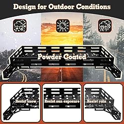 Versatile Compatibility: UTV Over Bed Cargo Rack designed to fit a range of UTV models, our Over Bed Cargo Rack features fully adjustable mounting brackets that accommodate bed rail widths 39.7"- 56.3" (inside width). Easy Installation: Bed Rack for UTV equipped with complete installation accessories and instructions. It can be successfully installed in just two simple steps. And it also included a lathe Mounting Kit. (Please note: This mounting kit is suitable for Polaris Ranger Full-Size, Ranger Mid-Size and General. If your vehicle is another model, you will need to prepare the appropriate mounting kit yourself.) Heavy-Duty Build: UTV Rack constructed from high-strength alloy steel, boasts a robust structure with a load capacity of up to 160 lbs, ensuring reliable performance. Durable Finish: Our UTV Bed Rack finished with black powder coated to resist rust and withstand tough outdoor conditions, the cargo rack also features drainage holes to prevent water accumulation and protect both the rack and your cargo. Multifunctional Design: The integrated slots along the UTV/ATV Over Bed Cargo Rack edges allow for easy attachment of accessories or securing ropes, ensuring luggage stays safe during transport. Perfect for outdoor activities such as camping, hunting, off-roading, and farm work. Expand Storage Space: Mounting brackets of Cargo Rack UTV provide 7" of clearance above the bed rail, effectively increase the storage space of the bed to accommodate more items. If you have any questions, please feel free to contact us and we will actively provide you with a prompt and suitable solution.