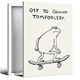 Xianyojafa Frog Poster, Quote Off To Commit Tomfoolery Canvas Wall Art, Cool Skateboard Frog Print, Funny Animal Posters for Room Aesthetic 12x16in Wrapped Canvas