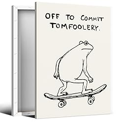 Funky Frog Wall Art Collection: A set of playful frog-themed prints designed to add humor and personality to your home, dorm room, or office space Off To Commit Tomfoolery Skateboard Frog Poster: Features a cool frog in motion on a skateboard, perfect for creating a fun and trendy atmosphere in bedrooms or game rooms Funny Frog on Toilet Reading Newspaper Print: This hilarious print captures a frog in a relatable and comical bathroom moment, making it the ideal decor for bathrooms or powder rooms Vintage Playing Banjo Frog Poster: A charming vintage-inspired design of a frog playing the banjo, adding a nostalgic and whimsical touch to your living room or music space High-Quality Prints for Lasting Appeal: Printed on premium canvas or art paper with fade-resistant inks, these pieces ensure durability and vibrant colors for years to come