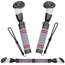 1.Enhanced nut securing technology for improved operational reliability: The Meta Quest 3 golf grip attachment, crafted with the dynamic gameplay of titles like Gorilla Tag considered, features a reinforced nut fastening design. This upgrade effectively increases the attachment's durability, catering to the rigorous motion of golf swings in virtual reality settings. By reducing the likelihood of the grip becoming loose, it ensures a more consistent and reliable performance, thereby making it a highly beneficial component for enthusiasts who enjoy Gorilla Tag and utilize the Meta Quest 3 Golf Club Attachment in their VR sports activities. 2.Custom-tailored for the Quest 3 series to enhance user experience: This grip is meticulously designed for the Meta Quest 3 and Quest 3S controllers, Its exclusive compatibility with the Quest 3 series, while not supporting the Quest 2 controllers, best Meta Quest 3 accessories. The Quest 3S compatibility further underscores our commitment to providing the best virtual reality enhancements within the Meta Quest 3 ecosystem. 3.Triple-Function Controller Extensions for Meta Quest 3S/Quest 3: This versatile handle attachment offers three distinct modes - Dual Stick Mode, Golf Club Mode, and Extended Handle Mode. Designed for seamless integration with your VR controllers, it ensures an easy and intuitive installation process. Tailored for a wide array of VR games, this attachment provides a snug fit and immersive gameplay experience. Ideal for titles like Beat Saber, Fruit Ninja, Golf+, Baseball, Tennis, and more, it adapts to various VR gaming scenarios. Customize your play with interchangeable extensions that cater to your specific VR gameplay requirements. 4.ABS Reinforced Plastic Shell: The component that connects to the controllers is crafted from premium reinforced ABS plastic, strength and durability. This high-quality material is not only perfect for intense sessions of Gorilla Tag but also for VR golf swings with the Quest 3 Golf Club Attachment. It offers seamless compatibility with Quest 3/Quest 3S controllers, enhancing your virtual reality experiences across various games. 5.Lightweight and Comfortable Grips: Crafted with high-quality, soft sponge material, this handle extension for Meta Quest 3/3S enhances comfort during gameplay, offering an easy grip that is non-slip. It provides players with a more realistic VR gaming experience in titles like Beat Saber, Fruit Ninja, Golf+, and more, specifically tailored for the Meta Quest 3 controller.