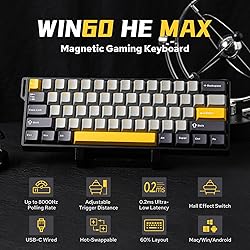 Up to 0.01mm RT Sensitivity: Ready to dominate every move? With just 0.01mm of break on Max and a mere 0.02mm on Standard version, the WIN60 responds instantly, executing commands with precision. Experience this rapid fast keyboard, as WIN60 handles even the most complex manoeuvres effortlessly, becoming a seamless extension of your reflexes. 0.3ms Latency Tested, 8000Hz Polling Rate: The WIN60 keyboard is a magnetic powerhouse, featuring both 8000Hz polling and 32KHz scan rates. Its ultra-low latency outperforms most 8000Hz magnetic switch keyboards, delivering a game-changing 8x faster response than traditional gaming keyboards. 60% Ultra-compact Layout: The 60% layout of the WIN60 combines a sleek, space-saving design with enhanced typing efficiency. Its compact form allows for faster mouse movements and improved ergonomics, making it perfect for gamers and professionals alike. Snap Tap & Dynamic Keystroke: Snap Tap ensures lightning-fast directional changes in FPS games by prioritizing the latest input between two keys. Dynamic Keystroke introduces true analog input, enabling up to 4 actions in a single stroke for seamless combos and macros. Adjustable Actuation Point: The WIN60 features fully adjustable Hall magnetic switches, allowing you to customize each key’s actuation point from 0.08mm to 3.4mm in 0.02mm increments, with Max version upgraded to 0.1mm to 3.4mm per 0.01mm. Take full control for rapid keypresses or ultra-precise typing tailored to your needs. Double-shot Durable Keycaps: Crafted with advanced dual-shot injection molding, the WIN60’s custom keycaps boast vibrant, durable legends that resist fading over time. This process not only enhances the keyboard’s sleek, minimalist design but also ensures a premium, long-lasting feel. Stunning RGB Backlighting: The WIN60 HE RGB keyboard offers 20+ lighting modes and up to 16.8 million of colours available with online driver. With intuitive driver software, you can easily customize lighting effects and colours to match your unique style. Elevate your setup with a personalized and vibrant typing experience! Online WEB Driver: The WIN60 HE’s web driver simplifies settings and parameter adjustments for users of all levels. All system performance parameters are fully customizable, with real-time visual feedback, including per-key rapid-trigger and sensitivity adjustments on the keyboard preview.
