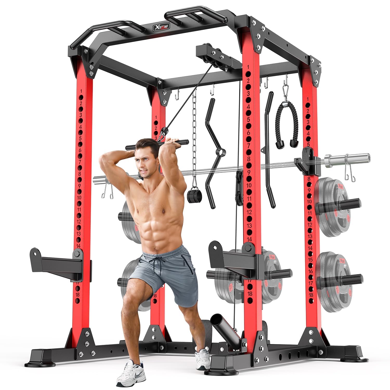 - Power Cage Multi-Function Squat Rack with Cable Crossover System Power Rack Selectable More Training Attachment Power Rack for Garage & Home Gym