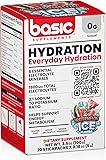 Basic Hydration Electrolyte Drink Mix, 1800mg Total Electrolytes, 6 Essential Minerals, 2:1 Sodium Potassium Ratio, 0 Sugar, Vegan & Gluten Free, 20 StickPacks