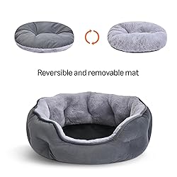 SOFT AND COMFORTABLE: Made with plush fabric and high-loft polyester fill, this calming bed offers comfort and warmth, perfect for furry friends who love to curl up. This product contains 100% GRS certified recycled post-consumer Polyester MACHINE WASHABLE AND EASY CARE: Designed for hassle-free maintenance, this washable bed can be tossed in the washing machine to keep it hygienic NON-SLIP AND SECURE: Featuring a grip-textured bottom, this bed stays firmly in place on tile, wood, or carpet for safety SUPPORTIVE AND DURABLE: With raised bolster edges, this pet bed provides extra head and neck support, promoting better sleep, please allow 1-2 hours for the bed to fully expand to its intended shape after unboxing VERSATILE DESIGN: Perfect for crates, kennels, or standalone use, this bed is available in small, medium sizes, effortlessly complementing any home decor