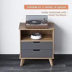 - Enhance your living space with the Guyii Compact Side Cabinet—a perfect blend of elegance, functionality, and durability. Designed with high-quality wood materials finished in a harmonious combination of natural wood and grey, this cabinet adds a touch of sophistication to any room while offering versatile storage solutions. The generous storage options include both hidden drawers and open shelves, providing ample room for organizing a variety of items. You can keep your living area neat and organized by storing books, magazines, remote controls, and decorative items in their designated spaces. The hidden drawers offer secure storage for smaller items, while the open shelves provide easy access to frequently used items. Safety is a priority with this side cabinet. The rounded corners minimize the risk of bumps and bruises, making it suitable for families with children or pets. Additionally, the sturdy construction, supported by solid wood legs, ensures that the cabinet can handle daily use without compromising on stability. The compact size of this side cabinet—measuring 23.62 inches x 15.74 inches x 26.18 inches—makes it an ideal choice for maximizing functionality in limited spaces. Despite its small footprint, it provides ample storage and can be used in various settings, such as next to your sofa or as a bedside cabinet. The straightforward assembly process ensures quick and hassle-free setup, so you can start enjoying your new cabinet immediately. Upgrade your home with the Guyii Compact Side Cabinet—a stylish and functional piece that enhances any living space with its practical design and robust build. Experience the convenience and elegance of this exceptional side cabinet today.