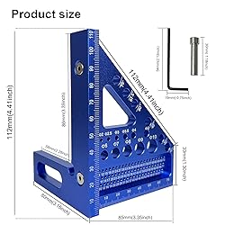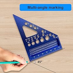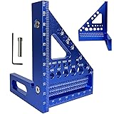 3D Multi-Angle Measuring Ruler, Carpenter Square Layout Ruler, Pin Pivot Design, 22.5-90 Degree Protractor, Compact Aluminum Alloy Miter Triangle Ruler for Precision Woodworking Blue (Metric)