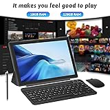 【Latest Android Tablet】This android tablet features 18GB RAM(Including 12GB of expandable memory) 128GB ROM, android 15 OS and a 10.1" IPS screen, its smooth operation enables seamless video playback, gaming, and multitasking. With ample storage capacity that can be expanded up to 2TB via microSD card (sold separately), you can confidently store all your photos, videos and files without concerns. 【2 in 1 Tablet with Keyboard Mouse And More】This Android 15 tablet package is a perfect combination, 10 inch Tablet connect with a wireless keyboard and mouse, with a protective case, flexible stylus, 2 in 1 tablet Suitable for various usage scenarios, can meet all your needs. 【WiFi 6+Bluetooth 5.0 】 The 10 inch Android tablet adopts the latest sixth generation WiFi technology and upgraded Bluetooth 5.0. The full frequency integrated chip makes 5G WiFi6 and 2.4G WiFi more stable, and the latest Bluetooth 5.0 connection supports all your favorite accessories, greatly improving data transmission speed, increasing network capacity, and reducing network latency. 【IPS Display & Dual Camera】- Equipped with 10.1" IPS 1280x800 HD screen, 2.0MP front camera/8.0MP rear camera, this android 15 tablet offers you a delightful experience while watching movies, reading books, or making video calls. 【Long Battery Life】Built-in 6000mAh lithium battery, this android tablet provides up to 8 hours of uninterrupted video playback, enabling you to use it for longer periods without any interruptions.