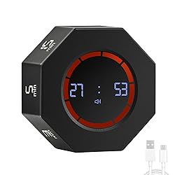 Countdown Timer : This space gray visual timer has 7 preset countdown times: 1, 3, 5, 15, 30, 60, and 90 minutes. Start by placing the fixed time face up; it can pause with the screen up and features a red progress bar during the countdown. Count Up Timer : This space gray desk timer for productivity counts up to 99:59. Place the [Timer] side up to clear settings and show 00:00, then press the power button to start/pause. It rings and flashes when time is up, then turns off. LCD Gravity Timer : This digital timer features an 8-sided rotating screen, sleek modern design, and high-quality ABS case. Great for work, study, cooking, and workout timer use, it’s a Pomodoro timer cube style with fun and cool countdown methods. Rechargeable Timer : This smart productivity timer uses Type-C charging for low power consumption and long battery life. With a full charge, it provides over 24 hours of continuous timing and 180 days of standby. Fast charging is not supported. Three-Level Volume Cube Timer : This flip timer offers loud, normal, and mute settings. Easily toggled with one button, it's ideal for effective time management in different environments. Ideal as a meditation timer, study timer & tea timer.