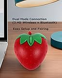 Wireless Bluetooth Mouse Cute Red Fruit Strawberry Shape Silent Portable Lightweight USB Optical Cordless Dual Mode Mice for PC Laptop Computer Tablet Mac MacBook Pro Desktop Kids Girls Women Gift