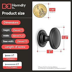 Design Style: The homdiy drawer handle features a circular top with a classic round shape, smooth rounded edges, and a slightly raised surface. Available in multiple colors, it offers a comfortable touch while complementing any decor style. Material: Crafted from durable zinc alloy, the homdiy cabinet door handle possesses a substantial weight and boasts waterproof and rust-resistant properties. Flexible Installation: Suitable for wardrobes, nightstands, kitchen cabinets, and various other applications, offering high practicality. Dimensions: Top diameter 1.2 inches (approx. 3 cm), overall height 1 inch (approx. 2.5 cm), single-hole design, base width 1 inch (approx. 2.5 cm). Accessories: Each handle includes two screws (1-inch fixed-length screw and 1.77-inch adjustable screw for trimming), allowing customization. Each knob and screw is individually packaged for easy installation. Service Guarantee: Customer satisfaction is our top priority. For any product inquiries, email us anytime—our 24/7 support team is ready to assist.