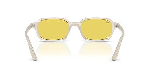 SIZING INFORMATION: This frame size is XS with a hinge to hinge measurement of 123 mm. Ideal for narrow to average faces. FRAME FEATURES: Zuri RB4455 delivers modern eco-conscious style with sustainable bio-based construction and retro-inspired design. Lightweight cloudy warm white frame with yellow mirrored gold lenses reduce glare and deliver bold reflective style. 100% UV PROTECTION: To protect your eyes from harmful UV rays, these Ray-Ban sunglasses include lenses that are coated with 100% UV protection. CASE & CLEANING CLOTH INCLUDED: Each pair of Ray-Ban sunglasses come with a cleaning cloth and case to clean and protect your sunglasses from scratches and damage. VISIT THE RAY-BAN BRAND SHOP: Click on the Ray-Ban link above the product title to shop the entire Ray-Ban sunglass and eyeglass assortment.