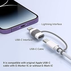 lightning to usb c adapter:These usb c female to lightning male adapters saving The Trouble of Carrying an Extra Cable, with everything moving to USB C, an lightning to usb c adaptor to charge your devices is much necessary; this usb c to lightning cable adapter is an ideal solution to charge and sync your devices, saving the trouble of carrying extra cable around Supports ONLY iPhone/iPad and Computer Data Transfer:The usbc to lightning adapter for iphone no data sync for any other devices; The Type C to Lightning cable adapter is compatible with iPhone 14, 13, 12, 11/11 Pro/11 Pro Max, Xs/Xs Max/Xr, X/8/8 Plus, iPhone Se/New Se/7/7 Plus/6/6 Plus/6s/6s Plus/5/5c/5s, iPad Pro 10.5', iPad Pro 12.9', iPad 5, iPad 4, iPad Air 2, iPad Air, iPad Mini 3, iPad Mini 2, iPad Mini Retina, iPod Nano 7, iPod Touch 5, AirPods, etc Fast Charging Not Compatible with PD:Please note this usb-c to lightning adapter supports fast charging but does NOT compatible with PD(power delivery) chargers, but support any USB-C cable/adapter at 1.8-2.2A 15W Fast charging rate and data transmission Attention Please :This iphone to usb c adapter NOT Compatible with OTG(On-The-Go), Android devices, Headphones, Car Play, Card Reader, USB Flash Drive, MIDI Keyboard, Mouse, U Disk, Hubs, Microphone etc Durable and Safe:This usb-c to lightning adaptor is made of premium aluminum alloy shell and can withstand multiple plug and unplug tests without breaking, ensuring durability and heat dissipation for long-term use. This usb c to iphone adapter turn your USB C cable into a i-OS lighting cable saving the trouble of carrying an extra cable around