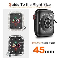 【Compatible Model】2 Pack hard bling diamond rhinestone apple watch bumper case offers protection for iWatch Series 7 8 45mm, guarding it against scratches, bumps, and impacts. Does not include screen protector. 【Precise Cutout & Protection】 Precise cutouts for easy access to functional buttons and ports; Protection of the Apple Watch bumper against scratches and bumps. 【Glitter Rhinestones Design】 This watch bumper case features glittering rhinestones, adding sparkle and glamour to your apple watch. Fashionable, suitable for various occasions like a celebrity 【Easy Installation】This Case for Apple Watch protective cover is designed for quick and hassle-free installation, no need to remove the watch band. 【After-Sales Service】 If you have any questions about our products, please feel free to contact us, we will provide you with the best service.