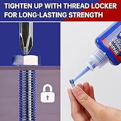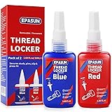 Value Threadlocker: Medium-strength blue Threadlocker and High-strength red Threadlocker, providing a wide range of options for your various needs. 2 x 50ml bottles of thread locker are easy to store and can be used for a long time without drying out or leaking Keep Fasteners Secure and Tight: EPASUN lock tight threadlocker has strong adhesion and keeps screws, nuts, and metal fasteners securely in place to prevent loosening caused by vibrations Waterproof and Rust-Resistant: This thread locker pack is heat-resistant and waterproof, providing a strong and consistent lock ensuring durability against leakage, corrosion, and loosening, ideal for indoor and outdoor use Quick and Hassle-free: Simply apply the thread locker evenly to the thread, tighten the nut, and cure initially for 10 minutes, then fully cure within 24 hours. If you ever need to take it off, it can be easily removed using basic hand tools Versatile Usage: Whether you're working on automotive repairs, tightening furniture screws, or handling industrial tasks, Its reliable performance and versatility make it ideal for automotive, industrial, and furniture use, saving you time and effort