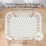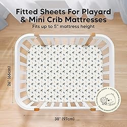 - and extra gentle Set your baby up for a comfortable and relaxing nap and play time in their playpen/pack and play playard with the Isla Mini Crib Sheets, Pack N Play Sheets, Pack and Play Sheets, Pack and Play Mattress Sheets. Featuring the softest material - which is highly breathable and temperature-regulating, keeping your baby comfortable all-day long. The perfect baby gift The exclusive gender-neutral designs are unisex and suitable for baby boys and girls. Each fitted mini crib sheet set comes beautifully packaged in a kraft gift box, making it a cute and. thoughtful baby gift for new parents. Features Fits standard pack and play mattresses, pack n play mattress pad, play pen, playard, bassinet, mini crib mattress pad Size: 38" by 26", up to 5" mini crib mattress height Gender neutral for baby girls and boys A baby registry essential Create A Baby-safe Environment Fitted pack and play mattress sheets, bassinet sheets that stay in place are essential for creating a safe play and sleep environment for your baby. We use a high-quality and durable elastic band that stays in place securely so that you have peace of mind, while the baby is playing or sleeping unsupervised. Extra Gentle on Skin Our Isla Fitted Mini Crib Sheets for Portable Pack and Play Mattresses are cooling and comfortable for sleep and play. The material is buttery soft, highly breathable, and gentle on baby's delicate skin. Durable and Lasting We use only certified-quality and baby-safe materials that are durable and lasting in our products. Our Isla Fitted Mini Crib Mattress Sheet is shrink-proof, machine washable, and dryer-friendly. Easy Change of Sheets Our Isla Fitted Mini Crib Sheet uses SnugFit Tech, a smart fabric knit that allows the fabric to stretch, for easy fitting and removal of the crib sheet. No more struggling with rigid baby crib sheets.