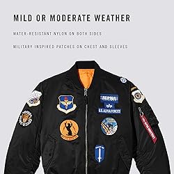- Bright and proud squadron patches adorn this classic bomber, while a water resistant shell and reversible interior make this a versatile jacket for any occasion. Constructed from mid-weight flight nylon with water resistance, the MA-1 fighter pilot jacket was the first military flight jacket to cross over into civilian fashion. This current version has been kept as close as possible to the classic military specifications.