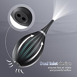 【Multipurpose】:The Lens Dust Air Blower is perfect for cleaning pc keyboards,alcohol ink art projects,watch repair,LCD screens,camera sensor,binocular lens,telescope lens, filters, musical instruments, succulent plants,etc. 【Soft Silicone Tip】:Scratch proof soft silicone air nozzle 36mm/1.42'' long,The soft silicone tip of the air blower pump blaster ensures safe and scratch-free cleaning,it perfect for delicate surfaces like camera lenses and computer screens. 【Silicone Lanyard Strap】:Additionally, it features an aluminum ring between the nozzle and the silicone bulb for a silicone lanyard string.Silicone lanyard string for conveniently holding it and easy to hang it on to the bag.The blower pump and it's reusable and reduces waste compared to traditional cleaning methods. 【Large volume of air output & Silicone Material】:Two one-way valves on the bottom features rapidly bring clean air and do not redistribute dust.Soft silicone material that offers a virtually instant rebound for a continuous stream of clean air. 【Compact Size,Easy to Grip】:With the lanyard, you could conveniently hold it,Dimension:Ф 57 x 123.8 x 57mm/Ф2.24 x 4.87 x 2.24 ''.