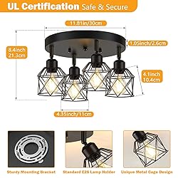 Fashion Decor: Made of sturdy metal and matte black finish craft, the ceiling track lights are anti-rust, non-fading and durable for a long time. Perfectly with any style decor from modern Industrial to the farmhouse which is a great idea for your Living Room, Kitchen, Dining Room, Bedroom, Hallway, Porch, Stairwell, Bar, Hotel and Restaurant, Coffee Shop, Art Display. Directional Farmhouse Ceiling Light: The track head can be rotate 360° horizontally and 90° vertically. You can adjust the light heads to different angles of kitchen light fixtures to fit your home decor. This farmhouse light fixtures with iron cage shape would become the focus of your house, which is stylish and artistic. Add more fun to your home now! E26 Base & Bulb Requirements: The light fixtures ceiling is compatible with E26 based bulbs, including LED, CFL, incandescent and halogen bulbs. It is also fully dimmable when used with a dimmable bulb and dimmer switch. You can choose different style bulbs and color temperatures to create different atmospheres. Note: The Bulb and Dimmer Switch Not Included. Simple Installation: Hardwired Design. The package of the hallway lights ceiling includes all installation hardware and instruction, you just need to attach the lamp holder and the lampshade together, then connect the wires of ceiling light on the home circuit and install the bulb. Only complete the entire process of installing this ceiling lamp within 15 minutes! Customer Satisfaction: This ceiling spot lighting featured with high-quality materials, which is beautiful and use for a long time. We are devoted to providing our customers great after-sales support with 1 years assurance. If any problems happen to the ceiling lights, please let us know and we will help you slove it.