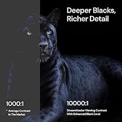 Speed and Power Like Never Before - Experience unmatched speed with the AI-9618 chipset, 4GB RAM/ 128GB ROM—delivering over double the power of other typical 2GB/32GB projectors, ensuring lightning-fast operation, smoother multitasking, and effortless 4K streaming. Its advanced architecture handles intensive tasks like gaming, AI-driven optimizations, and large content files without breaking a sweat, while others lag behind. Game-Changing Speed for Competitive Gamers - At just 4ms input lag and 240Hz refresh rate, the StreamMaster Plus is a dream for gamers. Special modes like RPG, FPS, and enhanced night vision crosshairs offer tailored settings, while ultra-low latency ensures smooth, responsive gameplay, giving you a competitive edge. All-in-One Entertainment Hub - With Google TV OS, you can instantly stream your favorite platforms like Netflix, YouTube, and Disney+, without needing extra devices. Built-in support for AirPlay 2, Miracast, and Chromecast makes sharing content from any device a breeze, making this projector the ultimate all-in-one solution for your entertainment needs, eliminating the need for extra devices or complicated setups. Next-Level Visuals & Immersion - Experience vibrant, lifelike images with deeper blacks and brighter highlights. Powered by Enhanced Black Level technology and a 10,000:1 contrast ratio, this projector ensures every detail pops. Dynamic Tone Mapping adjusts brightness and contrast in real time, delivering flawless 4K UHD performance, including Dolby Vision and HDR10, for an immersive cinematic experience. Voice-Controlled Convenience & Instant Setup - Set up and control your projector effortlessly with Alexa, Google Home, or Apple HomeKit. With automatic features like obstacle avoidance, alignment, focus, and keystone correction, the StreamMaster Plus adjusts to your space instantly — just speak to turn it on and enjoy hands-free operation. Your Home, A Cinematic Masterpiece - Experience IMAX Enhanced technology that preserves up to 26% more image content in the iconic 1.9:1 or 1.43:1 aspect ratio. With an adjustable screen size from 50" to 300", customize your theater to your space. Paired with Dolby TrueHD Atmos and DTS-HD Master Audio, it delivers immersive, lossless sound for a truly cinematic experience. True Color, Sharp Precision - Boasting RGB triple laser technology and a 110% Rec. 2020 color gamut, the StreamMaster Plus delivers vibrant, true-to-life colors with 2000 ISO lumens of brightness, setting it apart from other projectors. ISF-Certified calibration ensures professional-grade color accuracy and consistency, making it perfect for both home users and experts seeking exceptional clarity and immersive visuals.