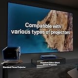 Matte White Screen with 1.3 Gain:Provides enhanced brightness and contrast for superior image quality, ensuring vivid and clear visuals. High-Quality PVC Material:Delivers vibrant colors and sharp details, offering a premium viewing experience in any setting. 170° Half Gain Viewing Angle:Wide viewing angle ensures a crisp, bright picture from almost any seat in the room. Wrinkle-Free Viewing Surface:Smooth, flat surface that guarantees an uninterrupted, high-quality viewing experience. Available in 100" to 220" (16:9):Choose from a range of screen sizes to perfectly fit your space and viewing needs. Tailor your screen size UP to 220" for a perfect fit on your wall and an immersive viewing experience. Easy to Clean & Maintain:Simple to wipe down and maintain, ensuring your screen stays in pristine condition for long-term use. Extensive Compatibility:Compatible with Long Throw, Short Throw, & Ultra Short Throw Projectors Versatile design that works seamlessly with various types of projectors, providing flexibility for different setups.